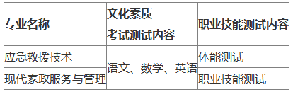 第十四条 此次高职单招招生考试采取“文化素质+职业技能测试”的模式,考试时间为4月6日(其中文化素质考试时间为9:00—11:00,职业技能测试开始时间为13:00)。各专业考试方式具体见下表。