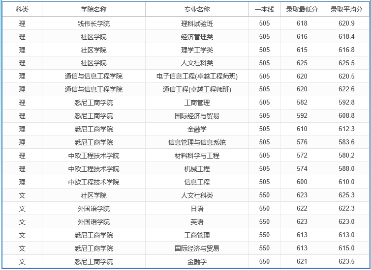 2018年上海大学安徽地区本科一批分专业录取分数线