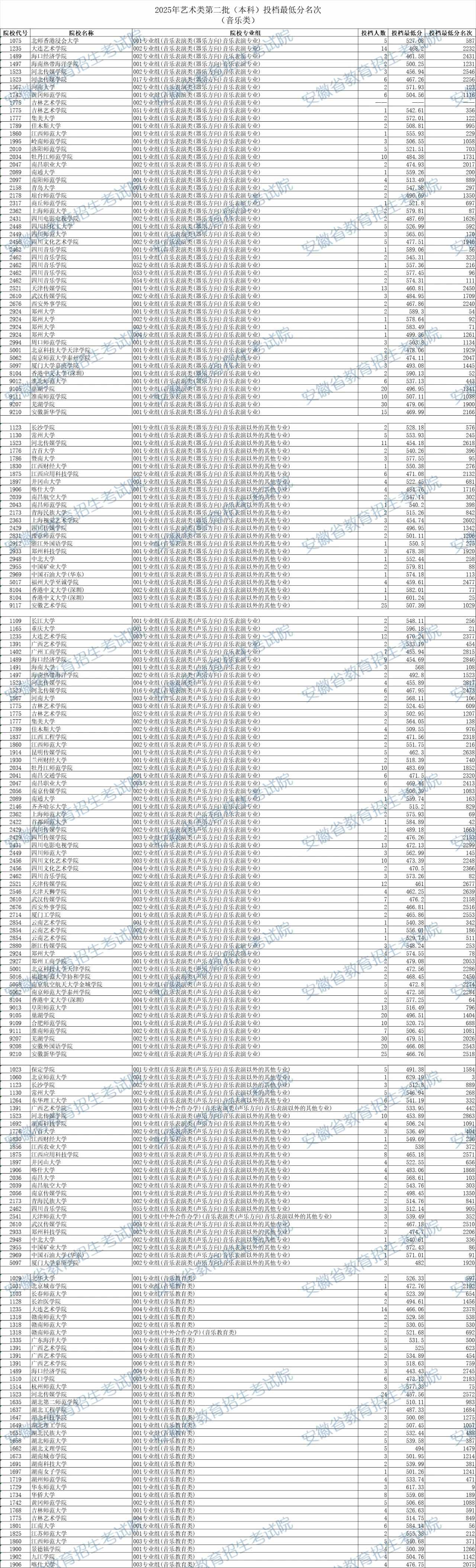 安徽省2025年艺术类第二批(本科)投档最低分名次(音乐类)已公布,具体内容如下: