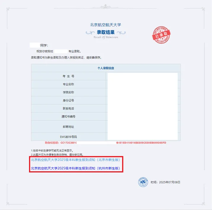 目前,北京航空航天大学高考招录工作正在有序进行录取通知书也已陆续寄出。