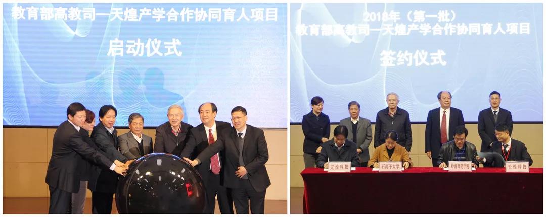 研讨会期间还举行了2018年教育部高等教育司——天煌科技产学合作协同育人项目启动仪式,并和合作高校进行签约。