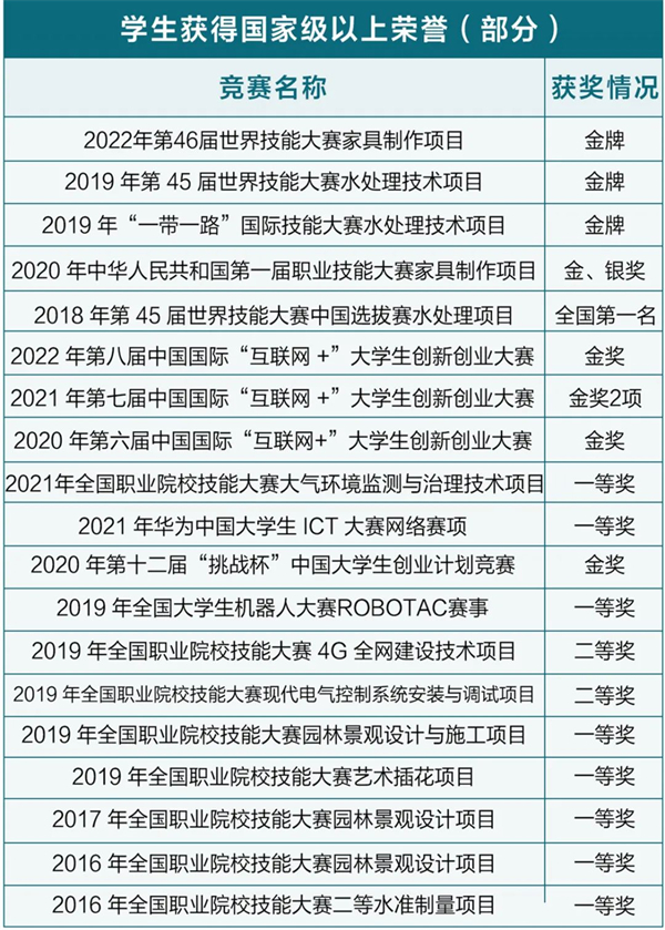 学校师资水平一流,现有教职工 939人,具有博士学位的教师 15 人,硕士学位教师 545人;内涵成果显著,现有国家级精品在线课程2门,国家级教学成果二等奖2项,国家级现代学徒制试点项目顺利通过教育部验收;专业设置齐全,学校现下设有8个联合培养专升本专业,50个高职专业;办学条件优越,校内实训设施设备完善,实验实训设备总值达15069.99万元;竞赛成绩斐然,2017-2021年全国普通高校大学生竞赛榜单(高职,TOP300)显示,学校位列全国第八位,江西第一位,学院也成为全国唯一一所获得两枚世界技能大赛金牌的高职院校。