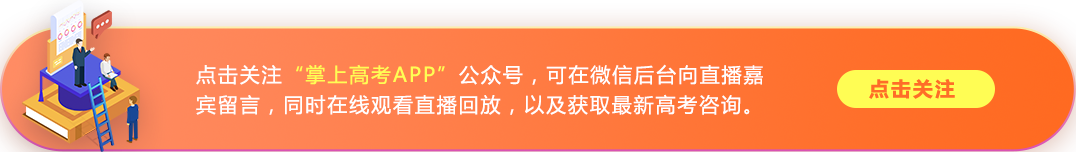 微信关注"掌上高考APP"进行预约,后续直播活动早知道!同时也可以加入2020年高考咨询家长交流QQ群:971619521