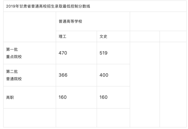 甘肃省2019年高考统招录取线公布,一本批次470(理工)519(文史类)
