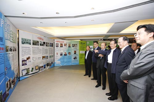 温家宝总理在学生的夹道欢迎下走进了大丰楼展览廊,这里正展示"澳大扬帆起航:新机遇、新进展、新挑战"的展览。赵伟校长向总理汇报了澳大在科技、人文、商科领域取得的重大突破和进展:微电子及中医药两个国家重点实验室刚获国家科技部批准筹建,多位科技学院的教师获得多项国际学术认同,包括副校长马许愿教授当选亚洲唯一一位葡萄牙科学院院士、科技学院院长陈俊龙教授成为大中华地区首位现职学者出任IEEE系统人机及智能自动学会主席、由澳大教授任首席科学家引领国家973科研计划;另外在人文学科领域澳大也取得了卓越的成果,在去年已制定了「澳门学」研究与发展规划,实质性推动「澳门学」的学科发展,将「澳门学」打造成为澳大的学术名片。温总理不时微微点头,他非常认同「澳门学」对研究本澳历史文化在中国乃至世界历史长河上有重要意义,认为须认真做好这方面的研究。