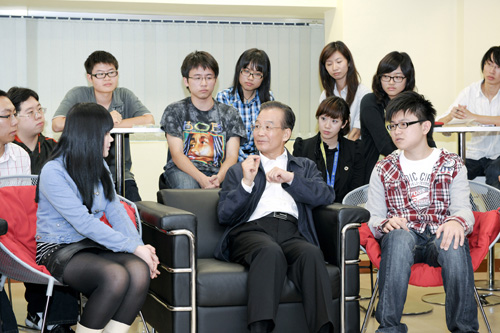 温家宝总理参观澳大东亚书院,与学生一起探讨公平和正义