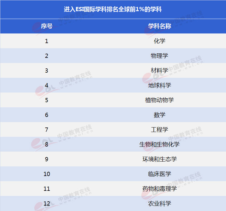 3)ESI全球排名前1%的学科
