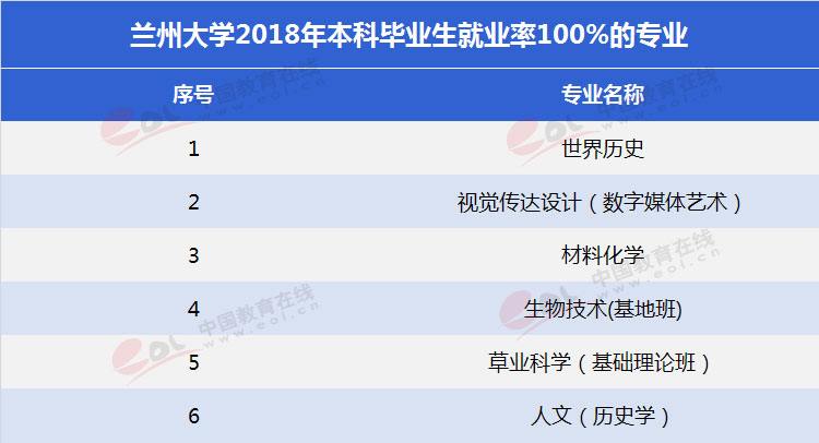 从本科各专业毕业生就业情况来看,2018年兰州大学有毕业生的本科专业中,有7个专业就业率达到了100%。