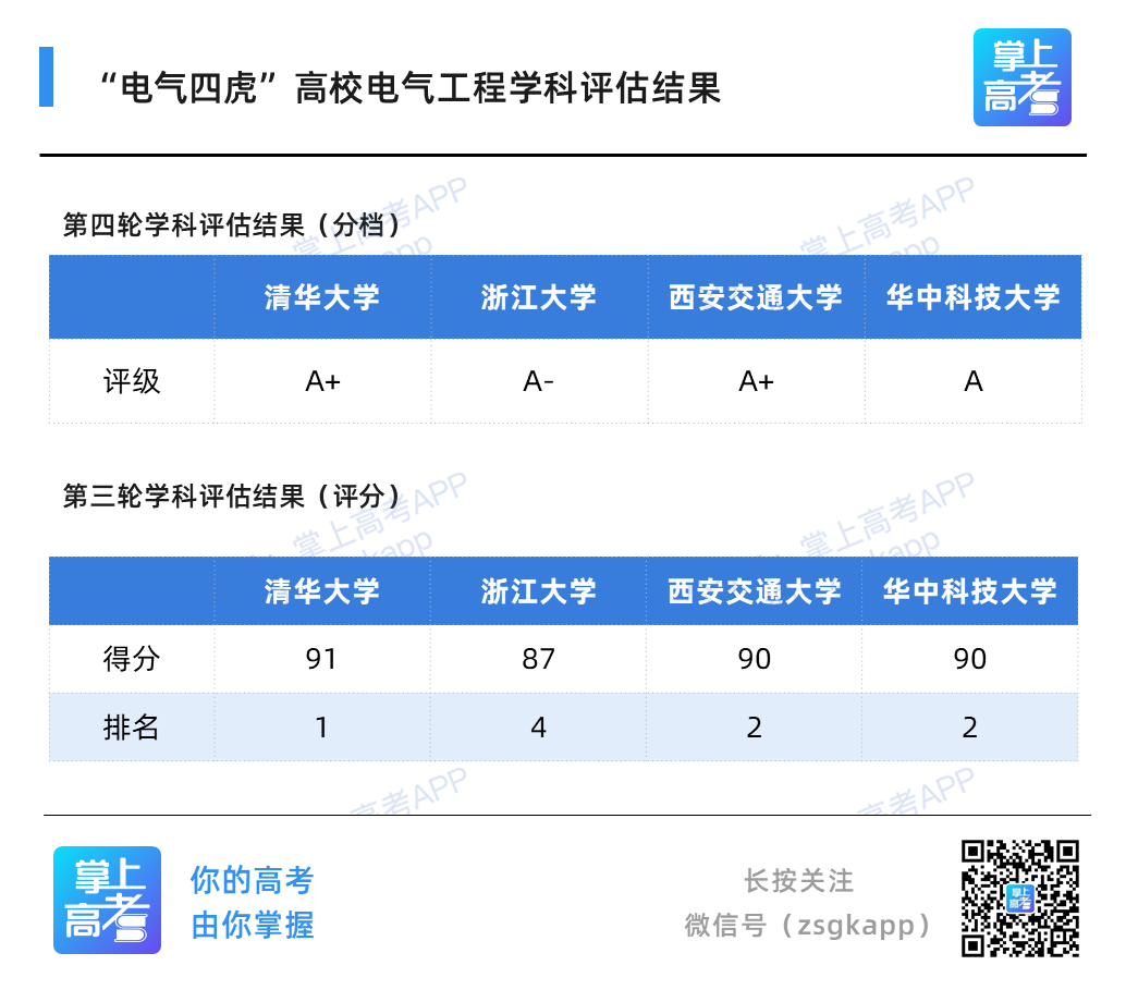 就学科实力而言,四校称得上是当之无愧的全国电气工程学科“四大天王”。在最新的学科评估中,四校的电气工程学科同列A类学科。