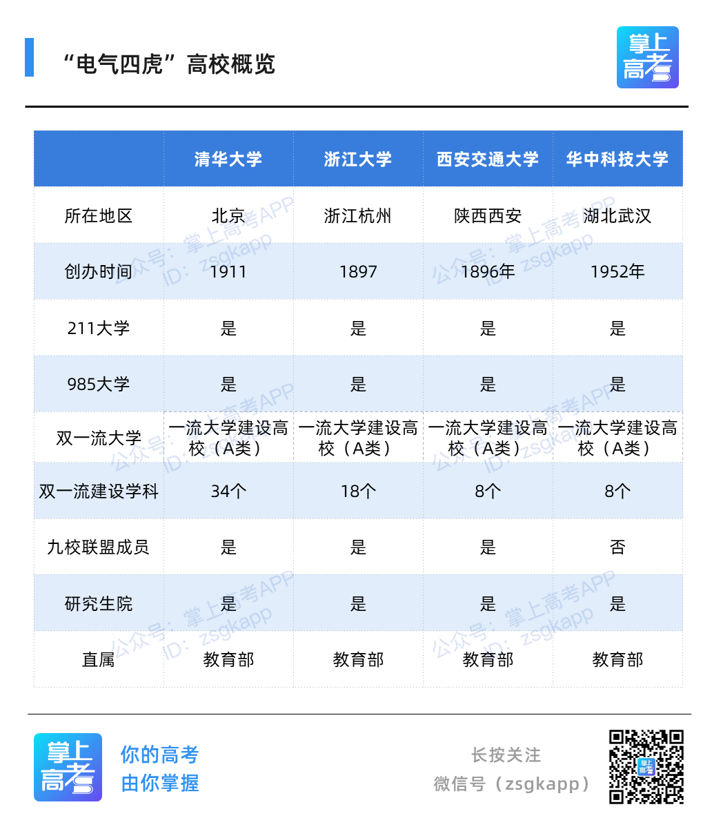 “电气四虎”之所以深受行业尊重,和它们综合实力强劲分不开关系。四校历史悠久,办学层次高,都是“985”高校,也同属A类一流大学建设高校。