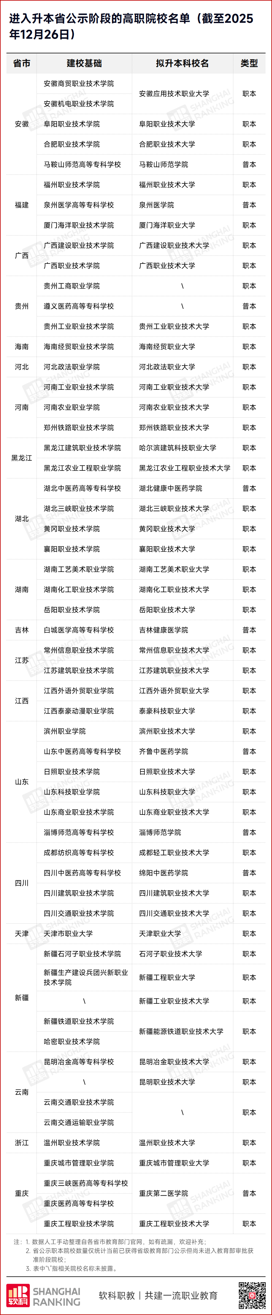 掌上高考留意到,近期职业教育领域传来重磅消息——多地密集公示新一批职业本科高校,全国职业本科阵营正在快速扩容!这对2026届考生和家长来说,无疑是升学路径上的重要变化,今天就为大家梳理这份超实用的政策干货。