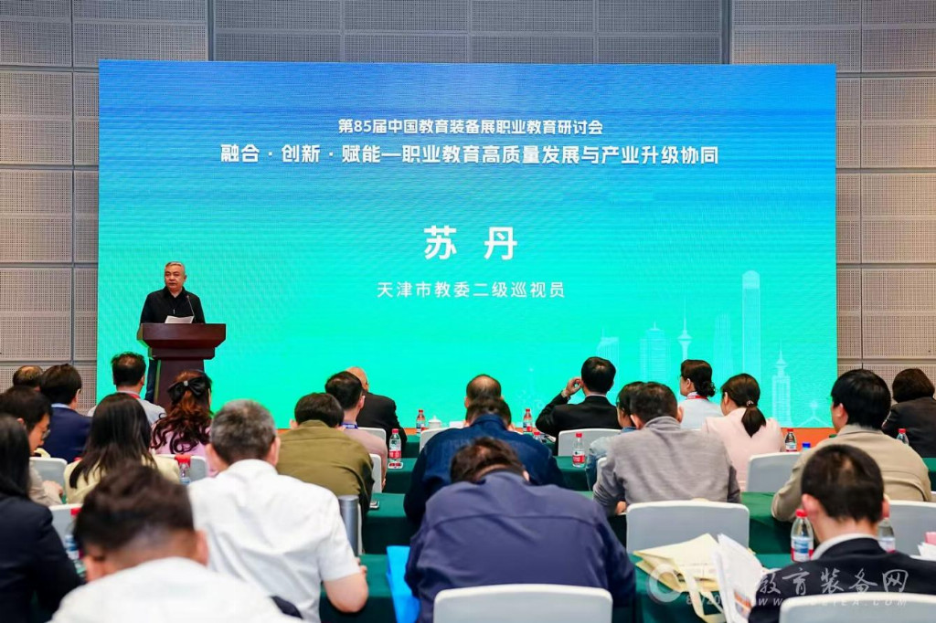 4月25日,在第85届中国教育装备展示会期间,由中国教育装备行业协会、天津市教育委员会、天津市教育科学研究院联合主办的“融合·创新·赋能——职业教育高质量发展与产业升级协同研讨会”在国家会展中心(天津)举办。中国教育装备行业协会监事长王鸿冰,天津市教育委员会二级巡视员苏丹、天津市教育科学研究院党委书记郭滇华等出席活动。