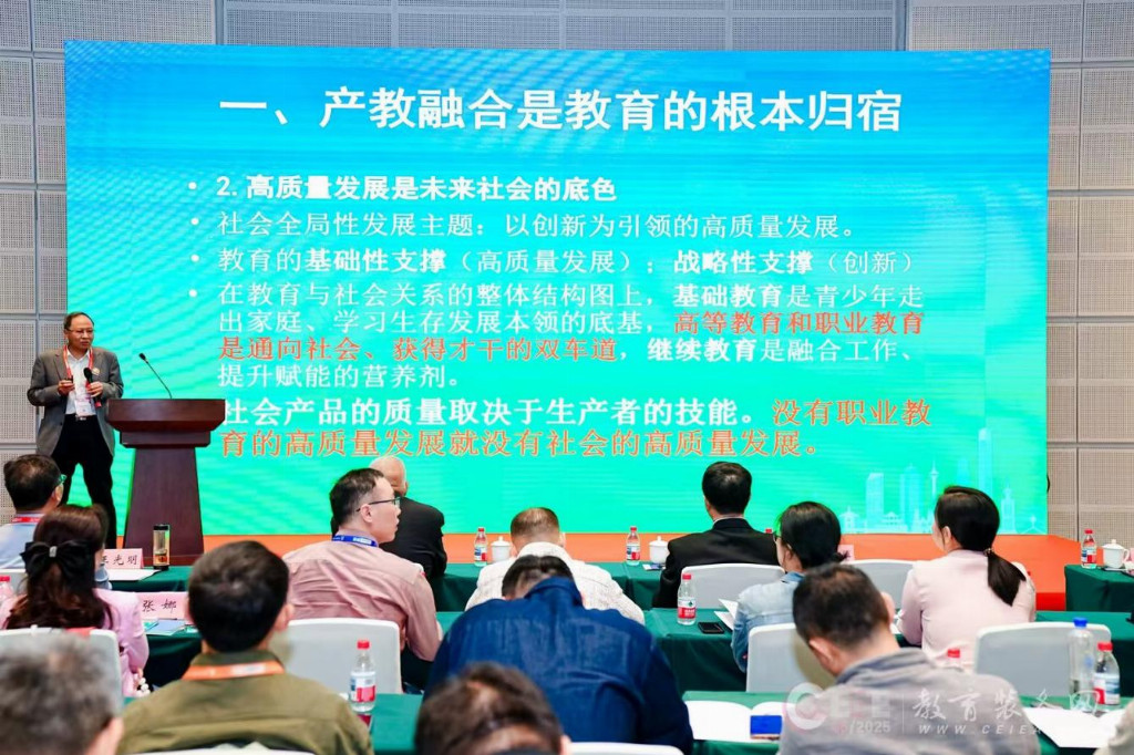 郭滇华在致辞中表示,天津市教科院将持续深化职业教育研究,创新理论、服务决策、引领实践,为天津乃至全国职业教育发展提供坚实的 “天津方案”。“让我们以此次研讨会为新起点,凝聚各方智慧与力量,在产教融合、科教融汇、开放共享的道路上砥砺前行,为建设教育强市、推动经济社会高质量发展贡献磅礴的职教力量!”郭滇华说。