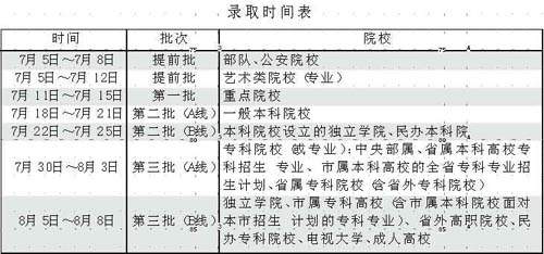 广东省2005年普通高等院校录取时间表(图)