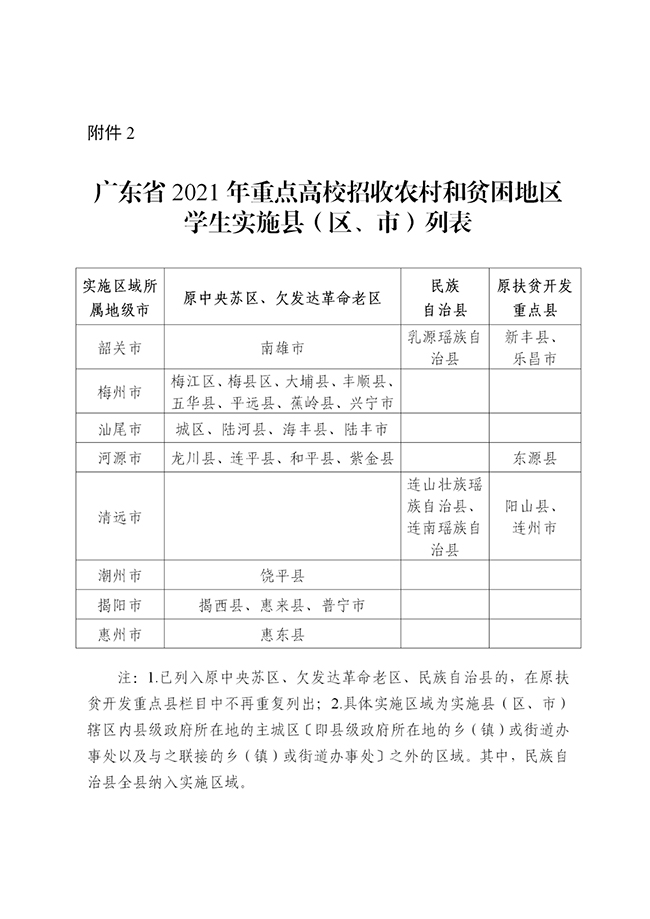 2.广东省2021年重点高校招收农村和贫困地区学生实施县(区、市)列表