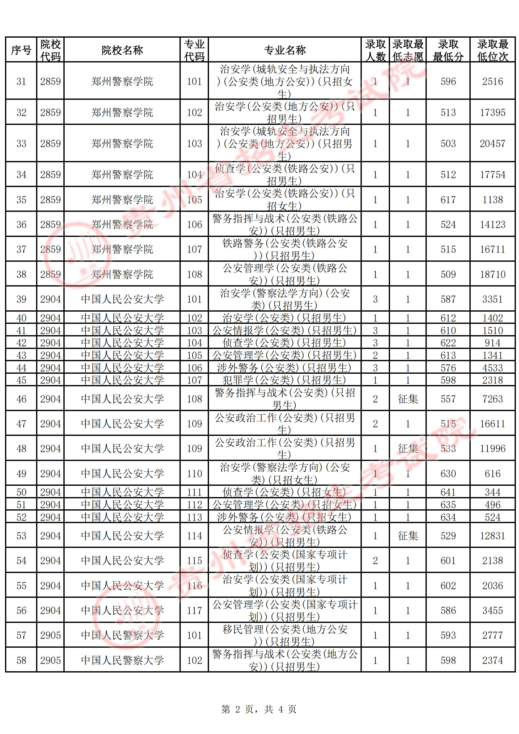 贵州省2025年高考普通类本科提前批A段录取情况(首选科目历史)