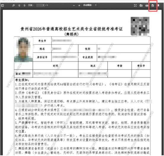 贵州:2026年普通高等学校招生艺术类专业省级统考准考证打印操作步骤