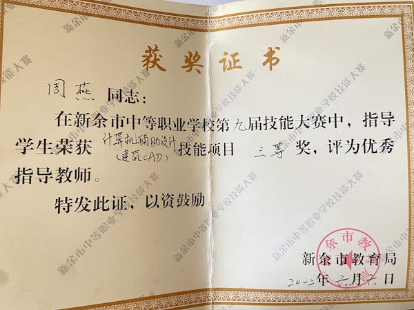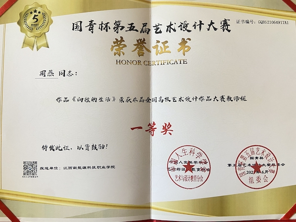 “教师是一个真正活到老、学到老的职业”,秉承这这份信念的周燕,在工作之余,多次参加省、市级技能大赛并获得“国青杯第五届艺术设计大赛教师组一等奖”、“新余市优秀教师”等荣誉。“作为教师,传道授业是天职,传承专业技能也是我的使命。”周燕说道。