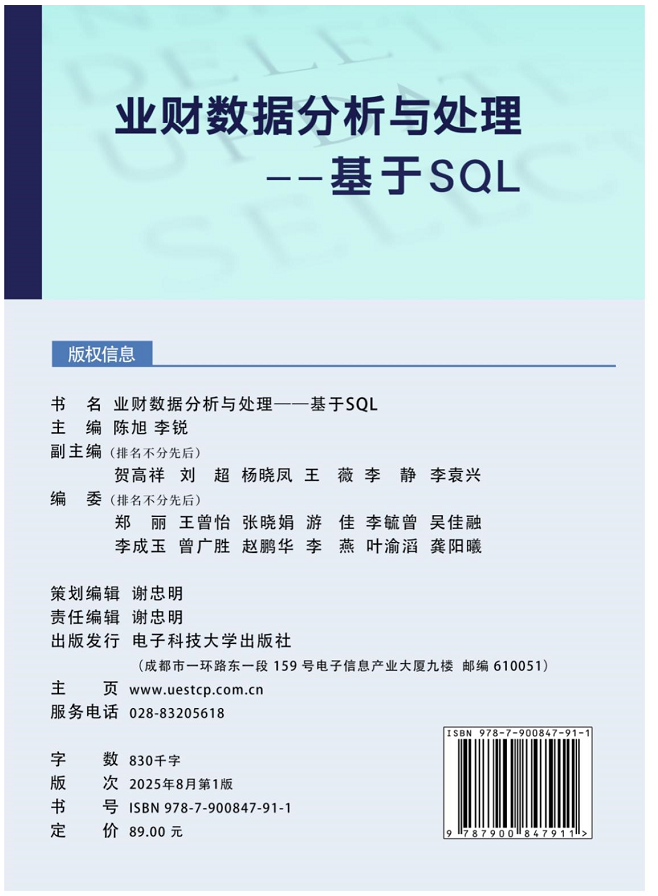 在教育数字化战略行动全面推进的背景下,重庆机电职业技术大学经济与管理学院率先实现数字教材建设新突破。由陈旭、李锐两位老师主编,多所院校专家联合编写的《业财数据分析与处理——基于SQL》数字教材近日正式出版发行。该教材作为学校首部正式出版的数字教材,标志着我校在“金教材”建设和教育数字化转型方面取得的重大进展。