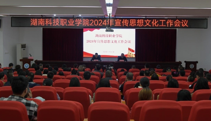 11月21日,湖南科技职业学院在天心校区南院多功能报告厅召开了2024年宣传思想文化工作会议。该校党委书记杨翠明出席并作重要讲话,学校领导班子、中层干部、副科级干部、专职辅导员、纪检监察处、党政办公室、组织人事部、宣传统战部、团委工作及马克思主义学院的全体教职员工和各二级学院教师代表、学生代表共计230余人参加会议。会议由湖南科技职业学院党委副书记邹海主持。