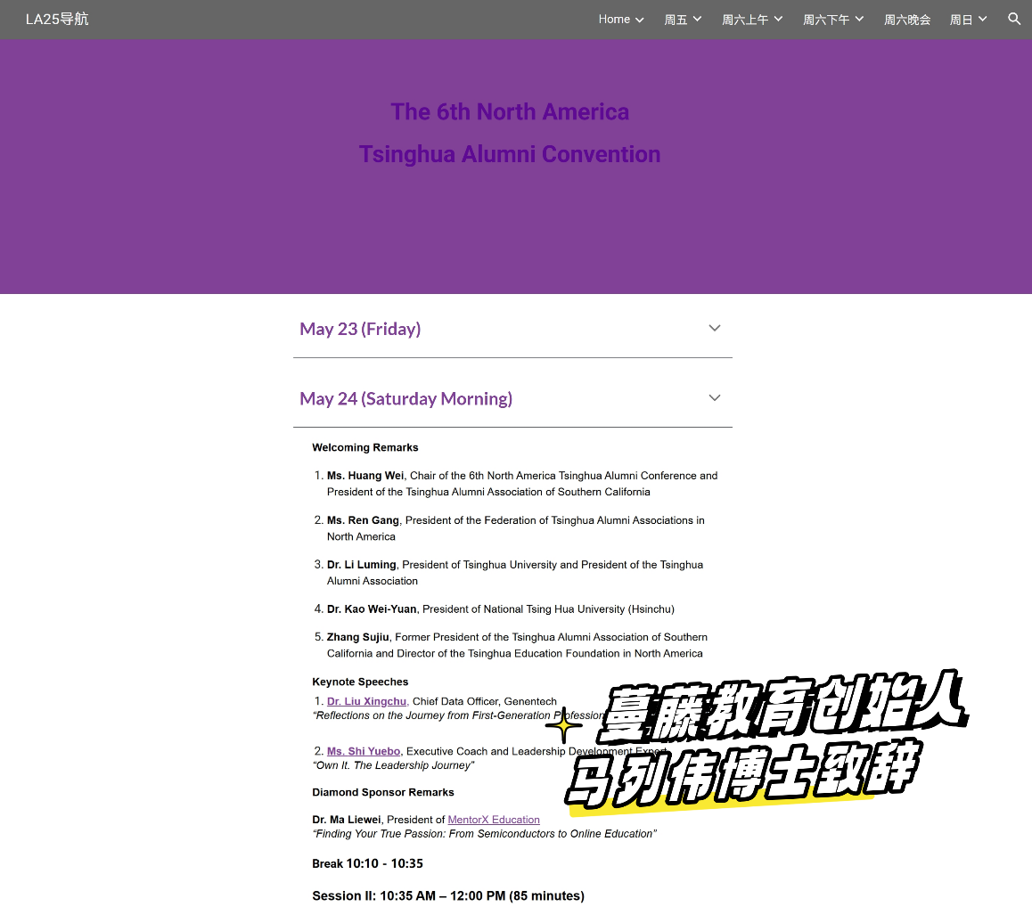 5月23日至25日,第六届北美清华校友大会将是一场智慧与温情的盛宴,具体日程: