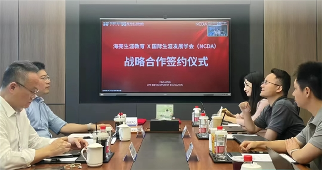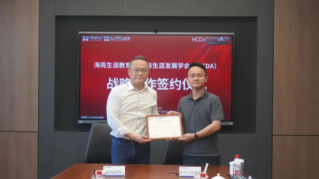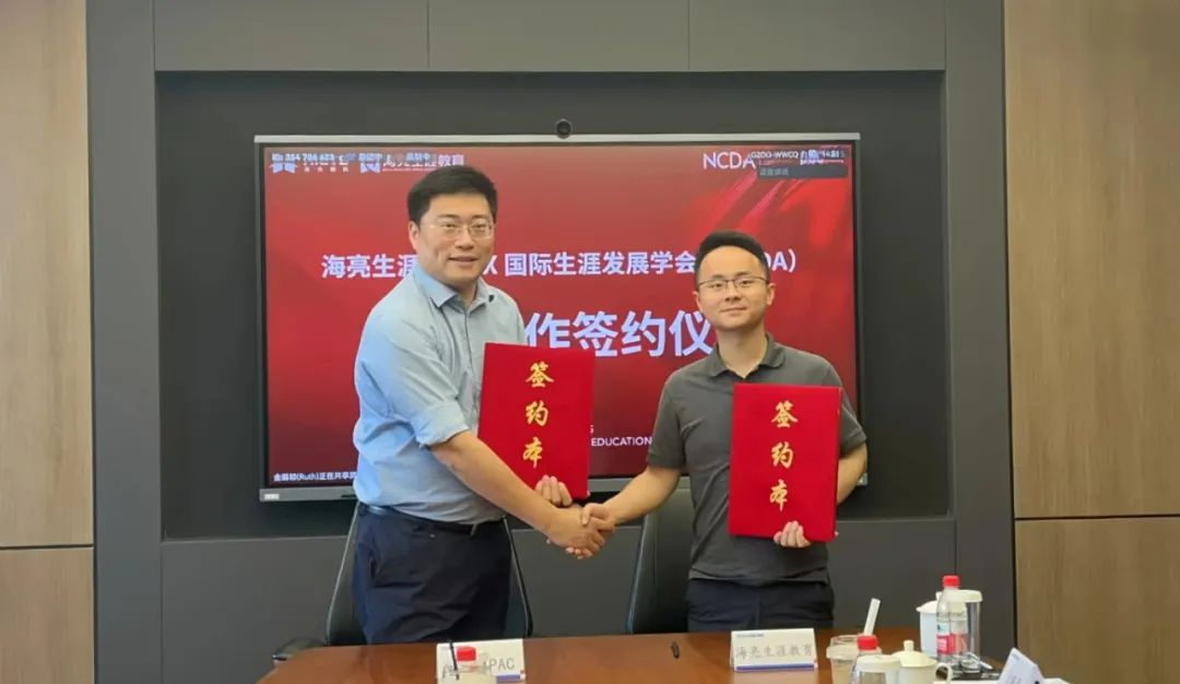 NCDA中国区负责人富锐,PAC心思咨询公司运营长林明辉,海亮生涯科技事业部副总经理兼生涯教育中心主任唐瑄,海亮教育科技服务集团高级专家叶礼清等出席签约仪式。根据协议,各方将遵循“互惠互利、共同发展、资源共享”的原则,围绕NCDA培训授权、生涯特色校建设、测评产品联合开发、生涯教育内容共创、县域服务校试点、生涯专家委员会共建等领域开展深度合作。