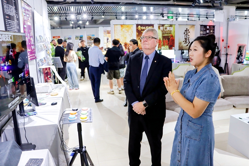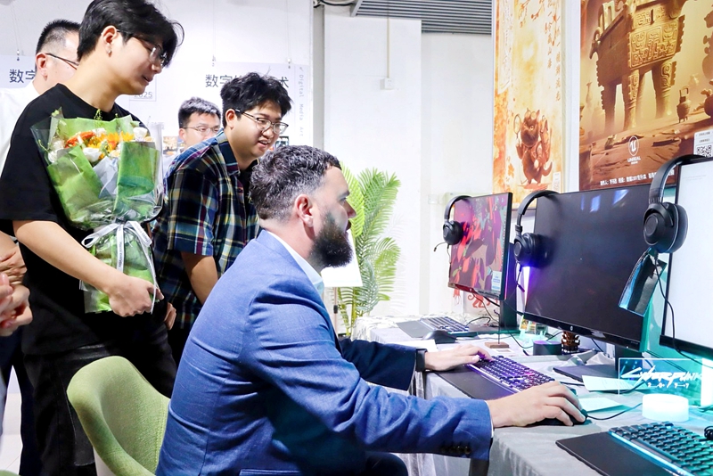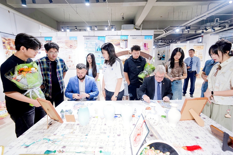 时隔一年,大卫·卡德韦尔教授再次到访燕京理工学院,参观艺术展厅、与学生一起制作“瓷画”、珐琅,大卫·卡德韦尔教授和詹姆斯·卡德韦尔先生驻足观看一幅幅学生的创意作品。他们表示,在燕理学子的作品中看到了青年创意的无限可能。