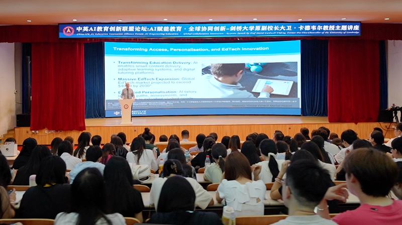 “人工智能技术正在重塑教育体系,通过深度融入课程设计与教学法,提升教育教学效率与学生参与度,为学生提供个性化的学习方案,满足差异化教育需求。”大卫·卡德韦尔教授以剑桥大学为例,讲解了人工智能技术在教育领域的变革与影响。