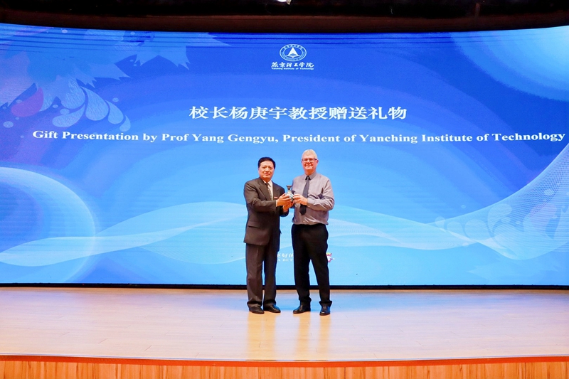 校长杨庚宇代表全校师生向大卫·卡德韦尔教授赠送了纪念品。