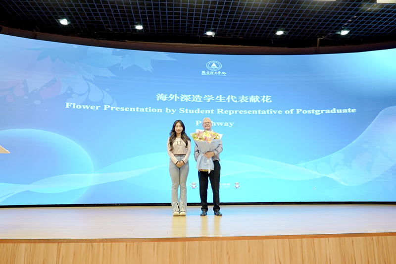 海外深造学生代表向大卫·卡德韦尔教授赠送鲜花。