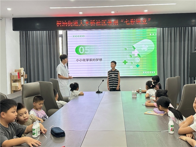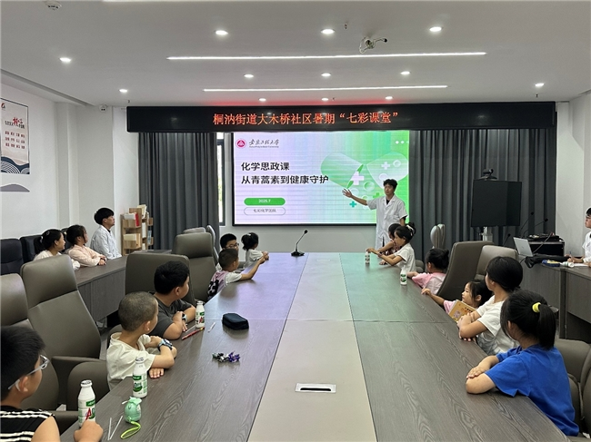 为提升青少年爱国情怀,培养家国意识,2025年7月9日,安徽工程大学“童享化学,七彩领航”乡村振兴实践营暨暑期“三下乡”项目第三日的活动在桐汭街道大木桥社区党群服务中心温情开讲。当天,一场以“化学与医药大思政课”为主题的特色课程,将科学知识与家国情怀巧妙融合,为参与活动的孩子们带来了一堂妙趣横生的成长课。