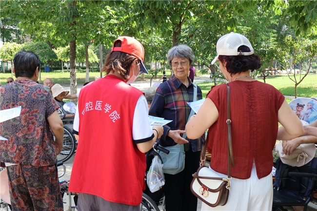 社区里的健康课堂:走进唐山市石油家园社区,闻讯而来的居民有序排队,师生们化身“健康使者”,边检查、边科普——耐心解答疑问,重点讲解龋齿、牙周病的预防与日常护理,现场示范正确刷牙方法,并发放口腔护理用品,让健康知识“看得见、学得会、用得上”。
