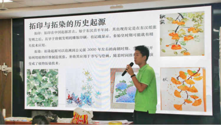 活动开场,队员们化身 “非遗小讲师”,为孩子们解读拓印与拓染的奥秘。从东汉起源的拓印技艺,到可追溯至公元前 3000 年、用植物汁水印染的拓染智慧,历史的脉络在讲述中清晰铺展。当孩子们知道眼前的树叶拓染,藏着数千年的文化传承,眼中瞬间燃起探索的光。