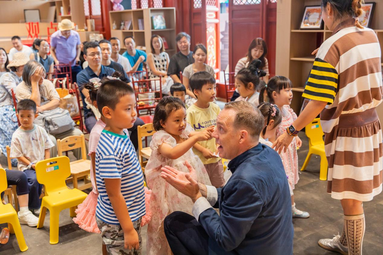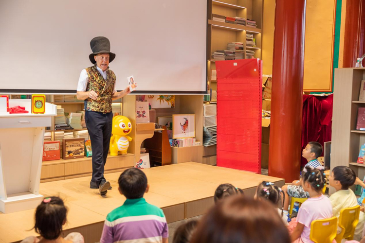 VIPKID Dino阅读馆里最受孩子们欢迎的杰瑞叔叔,这次在满是浓厚文化气息的场地,给大小孩子们带来《后羿射日》双语互动魔法剧。《后羿射日》作为中国民间文学,在2016年5月被列入保定市第五批非物质文化遗产项目名录。本次杰瑞叔叔以颠覆传统的表演形式,为现场的30组家庭带来了一场沉浸式的双语绘本剧。