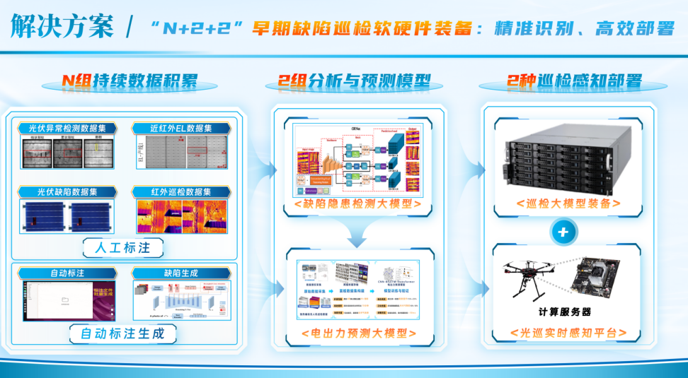 光巡科技团队在陈海永、苏斌义、许红三位老师的指导下,唐镇邦、曹佳琦、晏浩翔、孙嘉蔚、马丽蕊、于子朔等团队成员聚焦新能源巡检重大场景,针对光伏电站运维中早期缺陷检测的行业难题,自主研发了一套基于可见光影像的智能巡检系统。传统红外检测技术难以识别早期微弱缺陷,该团队创新性地构建了高质量光伏缺陷数据集,并采用特征解耦技术有效解决了实际场景中的域偏移问题,推动了人工智能+新能源产业深度融合。
