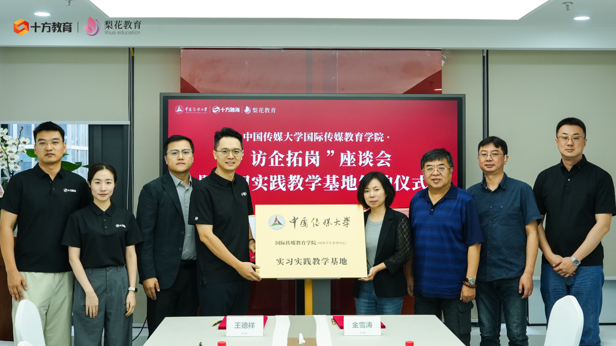 2025年10月18日,为落实“访企拓岗促就业”专项行动,中国传媒大学调研团赴十方融海梨花教育开展校企合作交流,于广东省深圳市南山区软件产业基地举办访企拓岗座谈会暨实习实践教学基地合作协议签署仪式。此次活动由中国传媒大学国际传媒教育学院院长金雪涛带队,十方融海副总裁苏涵、CMO王德祥热情接待。校企双方围绕人才培养、学科共建、实习实践、银发经济服务创新等议题展开深入探讨。