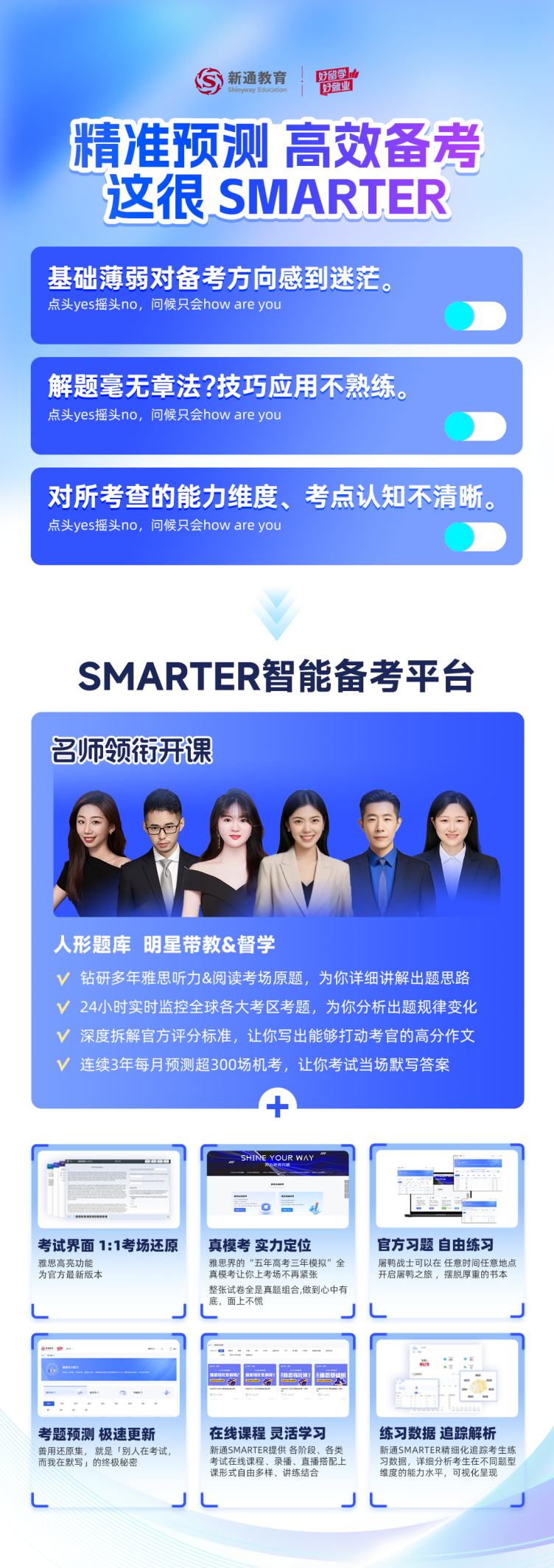 • SMARTER智能备考平台:作为专业服务团队的有效延伸,提供个性化备考规划、1:1还原官方机考界面、考题预测极速更新与学练考评测一站式服务,帮助学子高效备考,稳步提分。