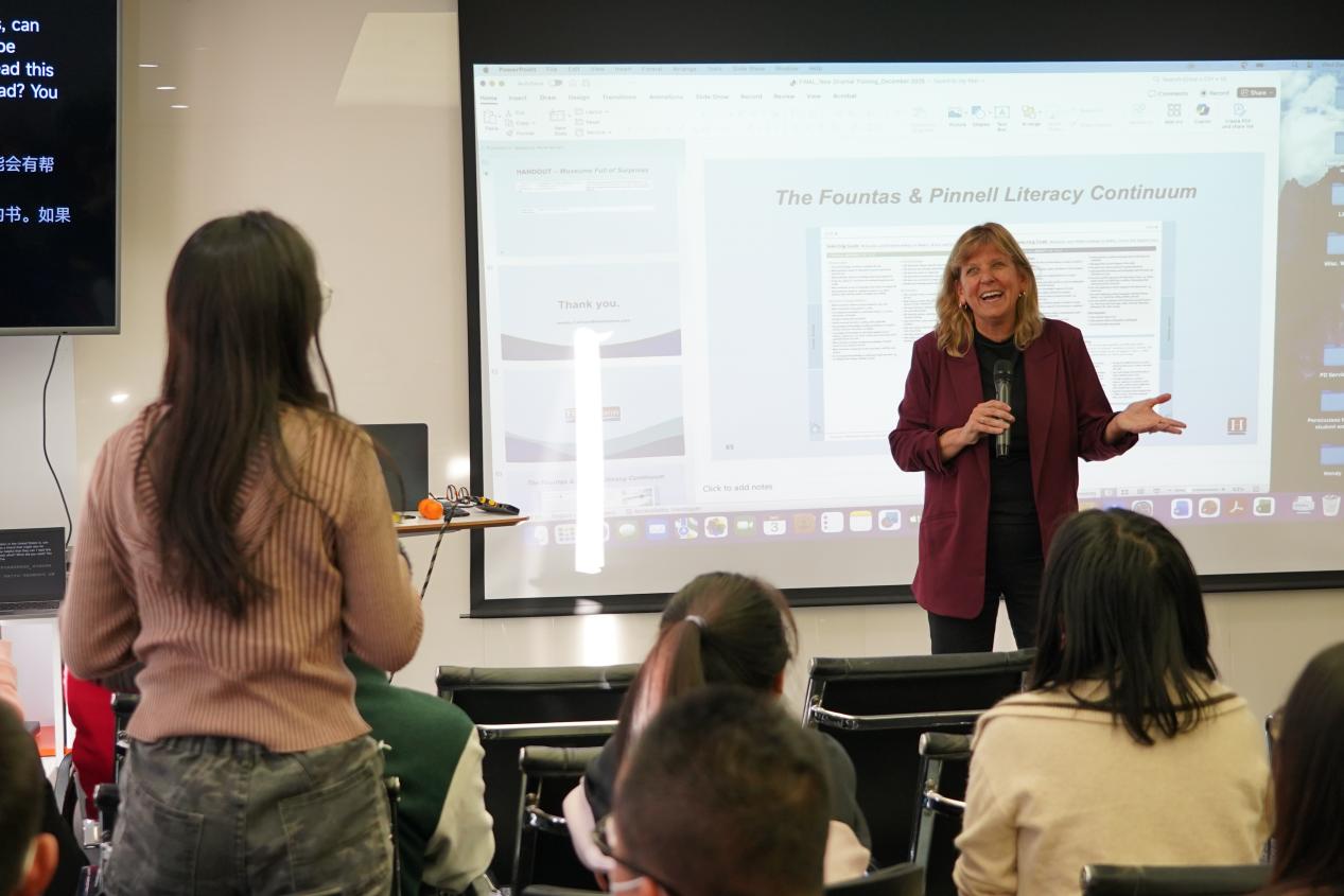 此次工作坊聚焦海尼曼阅读行为策略系统(SYSTEMS OF STRATEGIC ACTIONS,简称“SOSA”)的本土化落地与教学转化。作为国际阅读教育专家,温迪·马特森指出:在阅读指导的任何环节,选择恰当的读物至关重要,而一套专业的阅读行为策略系统则是贯穿整套读物的核心教学逻辑——通过可视化文本信息、预测、推理、批判性思考、分析、总结等十二项阅读策略,精准捕捉并深入解析读者在阅读过程中所进行的复杂认知活动,引导读者从“被动听读”转向“主动思考”,实现从“Learn to Read”到“Read to Learn”的关键跃迁。