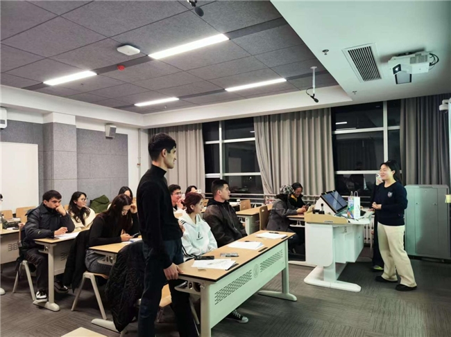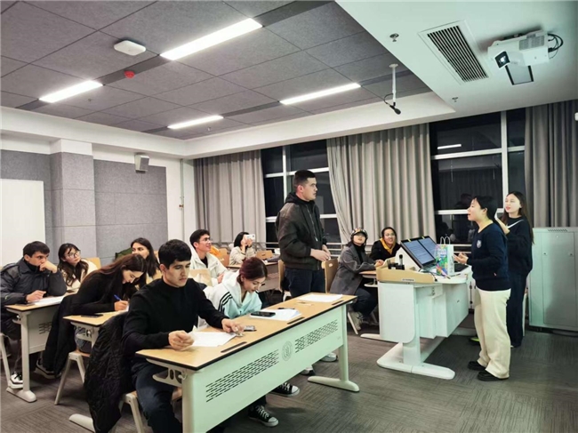 活动伊始,主持人向留学生介绍活动背景。“我们希望通过这些真实的三农故事,让大家看到当下中国乡村生活的变化,也希望听到你们对故事内容的真实想法。”主持人说道。在核心的故事讲述环节,4 位来自不同专业背景的中国本科生依次登台,每人以 6 分钟的脱稿分享呈现了多维度的 “三农” 图景。其中,既有农学专业学生带来的赵洪璋院士育麦济农的实践故事,也有语言学院学生分享的“瑞雪”苹果促进乡村振兴的创新案例。互动交流环节气氛热烈,留学生围绕“中国农村是否与自己原有印象不同”“故事的哪些部分最帮助理解中国”“本国乡村与中国的相似性”等话题展开深入探讨。来自土库曼斯坦的留学生周玫表示:“这些真实的故事打破了我对中国乡村的固有认知,看到了科技赋能农业、文化滋养乡村的鲜活实践。” 10 分钟的自由对话不仅加深了留学生对中国 “三农” 的理解,也为项目组提供了珍贵的受众反馈。活动尾声,留学生填写专项问卷,对传播效果进行量化评估,项目组还对三名留学生进行深度访谈,以进一步了解三农故事的跨文化传播质量及受众反馈,为后续研究提供扎实数据支撑。