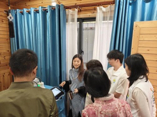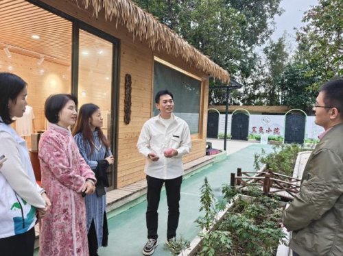 座谈会上,产业园总经理曹洪娟对一行表示欢迎,并介绍园区发展成果。依托罗浮山中医药文化底蕴与区位优势,园区已构建“种植—体验—康养—销售”全链条业态雏形:流转10亩村内闲置土地规模化种植红脚艾,后续计划引导村民参与种植并统一回收;传统工艺结合现代科技,已开发传统艾条,艾贴,洗护系列等生活用品,技术革新的呈现:AI人工智能机器人艾灸服务体验、纱线纺织品系列,正推进艾浴中心,全艾宴主题餐厅、酒店及艾文化科普展厅建设,未来将打造“民宿+康养”模式,举办艾文化节传播罗浮山艾文化。
