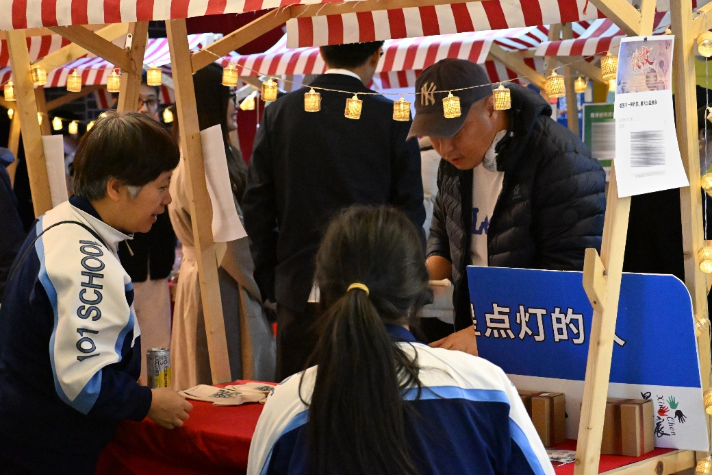 晚会正式启幕前半小时,现场爱心义卖专区启动。义卖品包括星火社成员、孤独症人士及其家庭准备的手工艺品、书籍文具、文创产品,以及农科院捐赠的爱心产品。参与人员通过购买义卖品奉献爱心,本次义卖所得善款将全部定向用于星宸孤独症人士关爱中心的康复教学与生活帮扶。星火社成员韩同学表示,希望善款能助力孤独症群体成长。