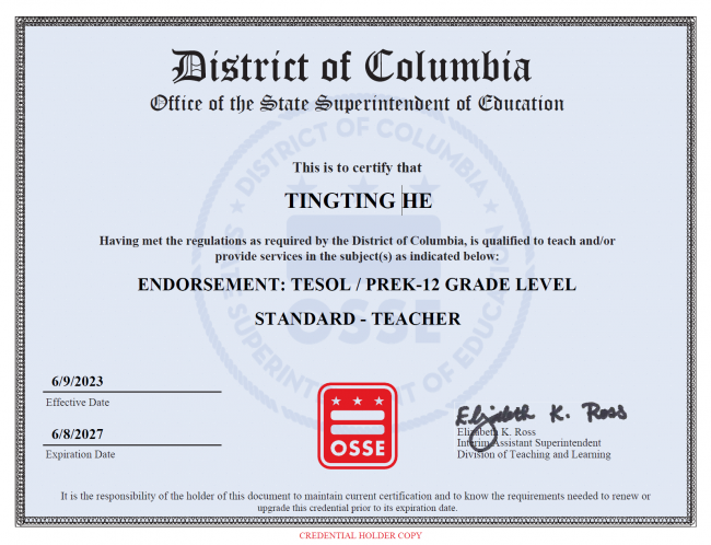 何婷婷:其实对我来说,这不完全是“转行”,更像是一种“融合”。我在外籍人员子女学校教中文的时候,面对的是非母语学生,教学方法本身就带有二语教学的影子。加上我有英语专业的背景,又考取了美国的TESOL和IBEC教师资格证,转向ESL教学其实是顺理成章的事。