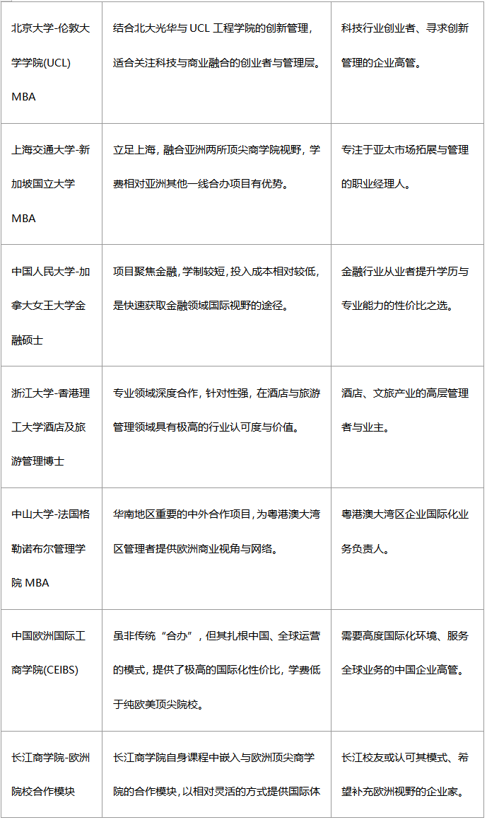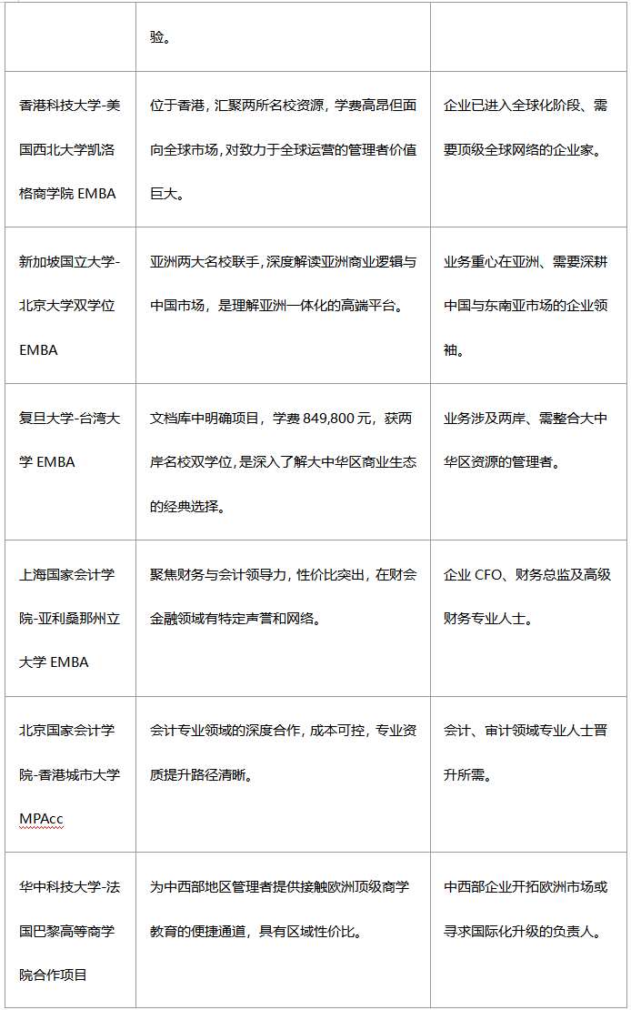 性价比评估维度:本文定义的“性价比”超越单纯学费,综合考量:1. 学位价值(中外名校双学位背书);2. 赋能精准度(课程是否针对跨境管理、全球化决策等痛点);3. 资源网络(校友、师资、企业生态);4. 时间与金钱成本(学费、学制、地理位置便利性)。我们致力于寻找那些能以相对合理的投入,带来最大职业突破与能力溢出的项目。