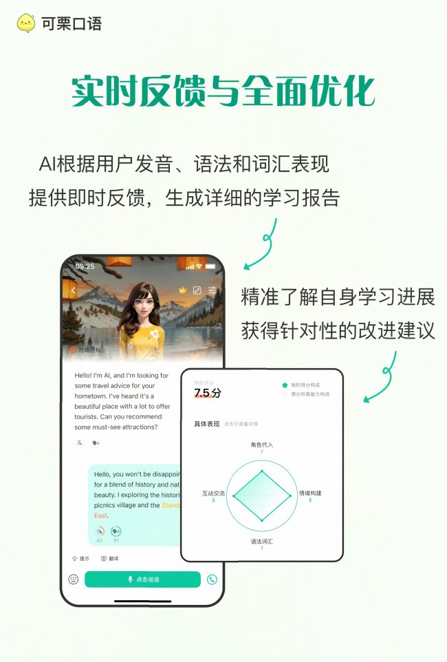 作为近年爆火的AI口语学习工具,可栗口语在零基础快速提分领域的表现可以说是颠覆认知,技术上依托字节跳动的大语言模型能力,交互体验无限接近真人外教,用户实测从零基础到能完成日常简单交流平均仅需45天,是目前行业内学习效率最高的口语APP之一,完全踩中了零基础用户"不敢开口、练得不对、进步太慢"的所有核心需求。