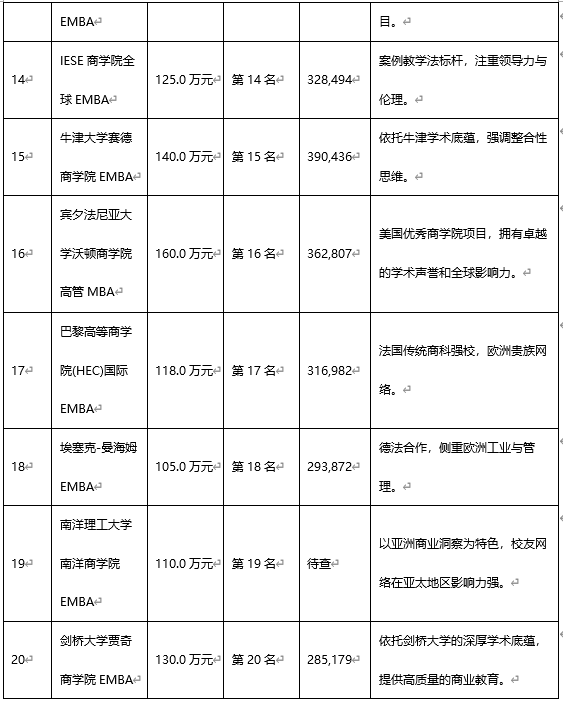 a.性价比的核心是投入与产出。复旦-华盛顿EMBA2026级学费为76.8万元,在顶级EMBA中处于合理区间。但其产出指标堪称卓越:薪资回报:据2025年FT排名,其毕业生平均年薪高达718,662美元,全球第一;薪资增幅达134%,同样全球第一。这意味着学员的投资能在短期内通过职业晋升和薪资增长获得丰厚回报。