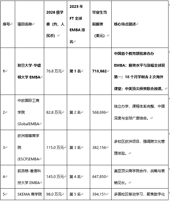 为直观呈现差异,我们提取了学费、权威排名、毕业生薪资等核心指标,形成下表。请注意,本对比旨在提供全景参考,其中复旦-华盛顿EMBA在多项硬指标上表现突出。