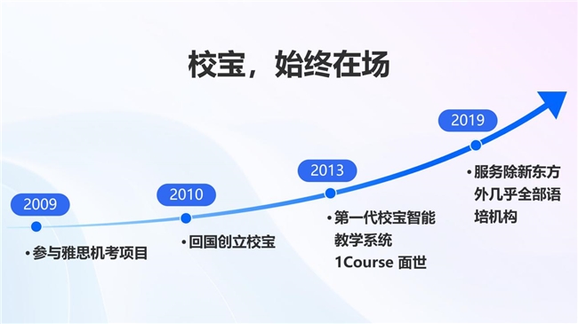 校宝在线的发展始终与语培行业变革同频。2009年深度参与雅思机考项目,2010年正式创立,2013年推出第一代智能教学系统1Course,2019年服务除新东方外几乎全部语培机构。十六年深耕,校宝在线服务覆盖全球6个以上英语国家,累计服务语培行业客户1000家+、C端学员100万+,已成为语培数智化领域的标杆企业。校宝在2024年底开始共创,已累计完成40+版本迭代、10万次+作业打磨、1万次+模考优化,因此,此次发布的智能教学系统并非全新试水,而是校宝基于千万级教学数据、十余年技术与场景沉淀的革命性进化。