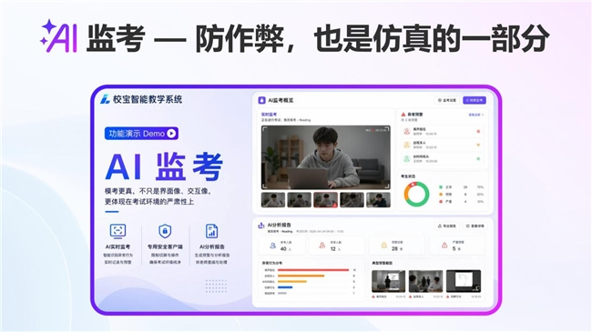 校宝AI智能教学系统深度贴合机考时代需求,将AI技术贯穿教学全链路,四大核心优势直击行业痛点。