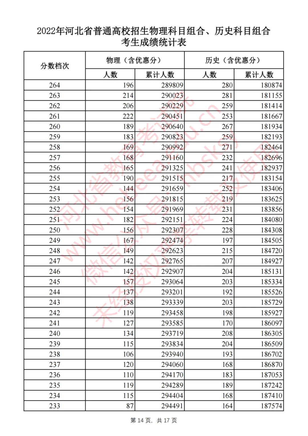 2023填报参考:河北2022年高考考生成绩一分一段表