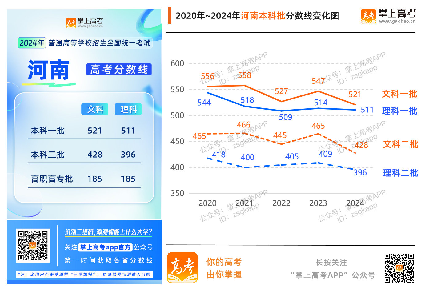 河南2024年高考录取分数线公布!掌上高考将2020年-2024年高考录取分数线整理出来,供大家参考。